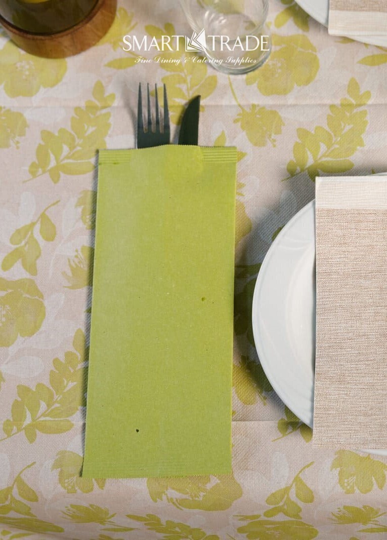 Φάκελος μαχαιροπίρουνων Fashion Mela χάρτινος premium, σε λαχανί χρώμα με διαστάσεις 11x25cm. Straw Paper με λεία υφή και μάτ όψη.
